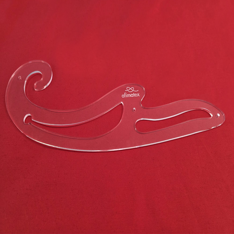 Esse modelo transparente com vários recortes permite traçar diferentes tipos de curvas com mais controle.