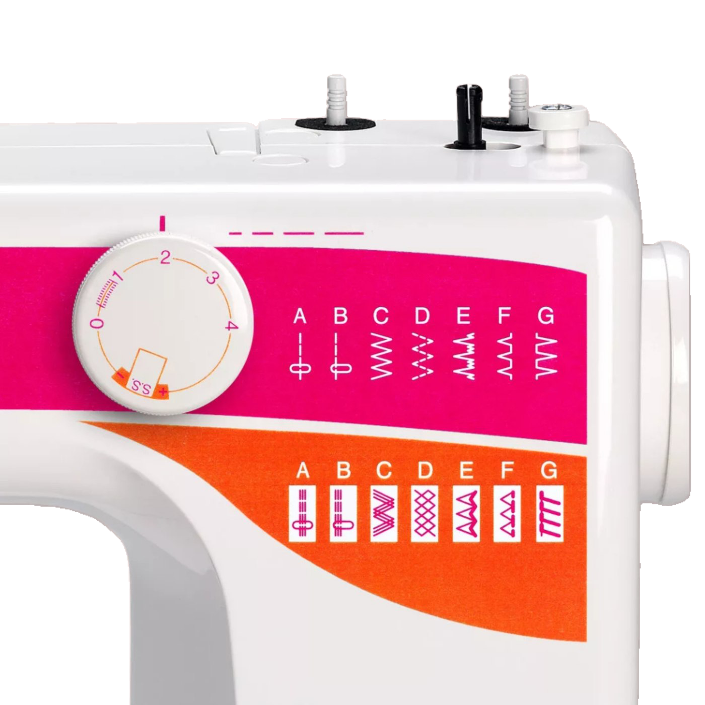 O comprimento máximo de ponto é de 4mm e largura de zig-zag regulável no max. 5mm