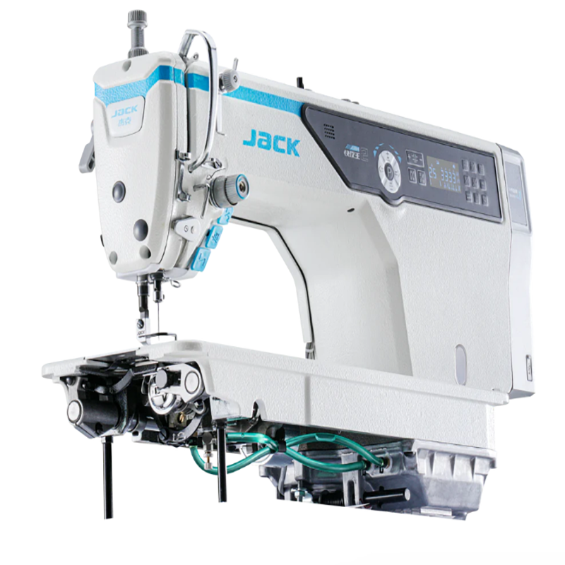 A Jack A5E-B é uma máquina de costura industrial reta de 1 agulha, com alimentação inferior e motor Direct Drive integrado na cabeça, o que a torna mais silenciosa e eficiente. Tem um corpo alongado, oferecendo cerca de 30,5 cm de espaço entre a agulha e o corpo da máquina.