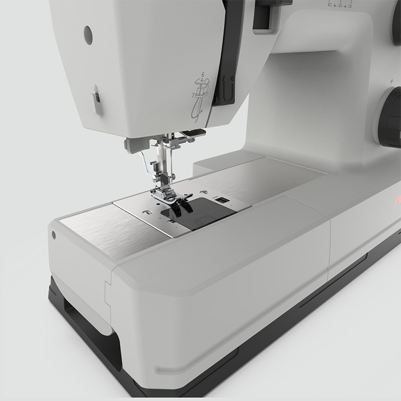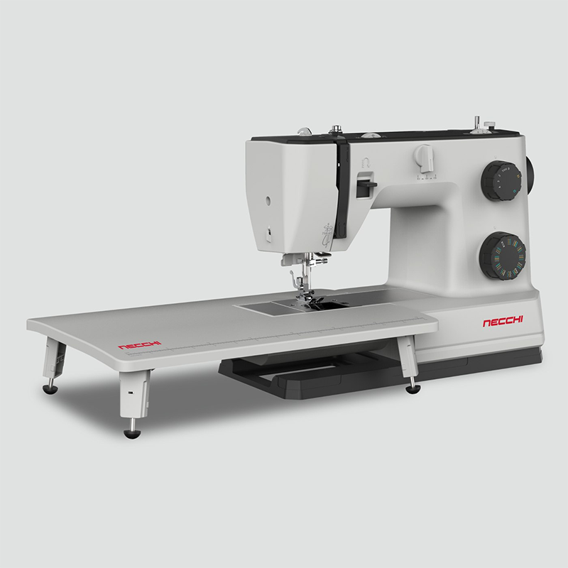 Serie Q 132A. Máquina potente e robusta, concebida para trabalhar com tecidos pesados tais como ganga, couro, lona ou bombazina. A base de trabalho em aço inoxidável facilita um movimento suave do tecido.