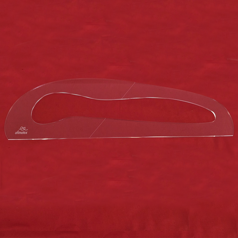 Diferente do curvígrafo mais “artístico”, essa régua tem curvas mais longas e suaves, pensadas para acompanhar o corpo humano e facilitar a criação de moldes na costura.